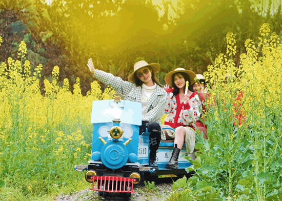 穿梭在油菜花田的田园小火车 让你瞬间重回童年